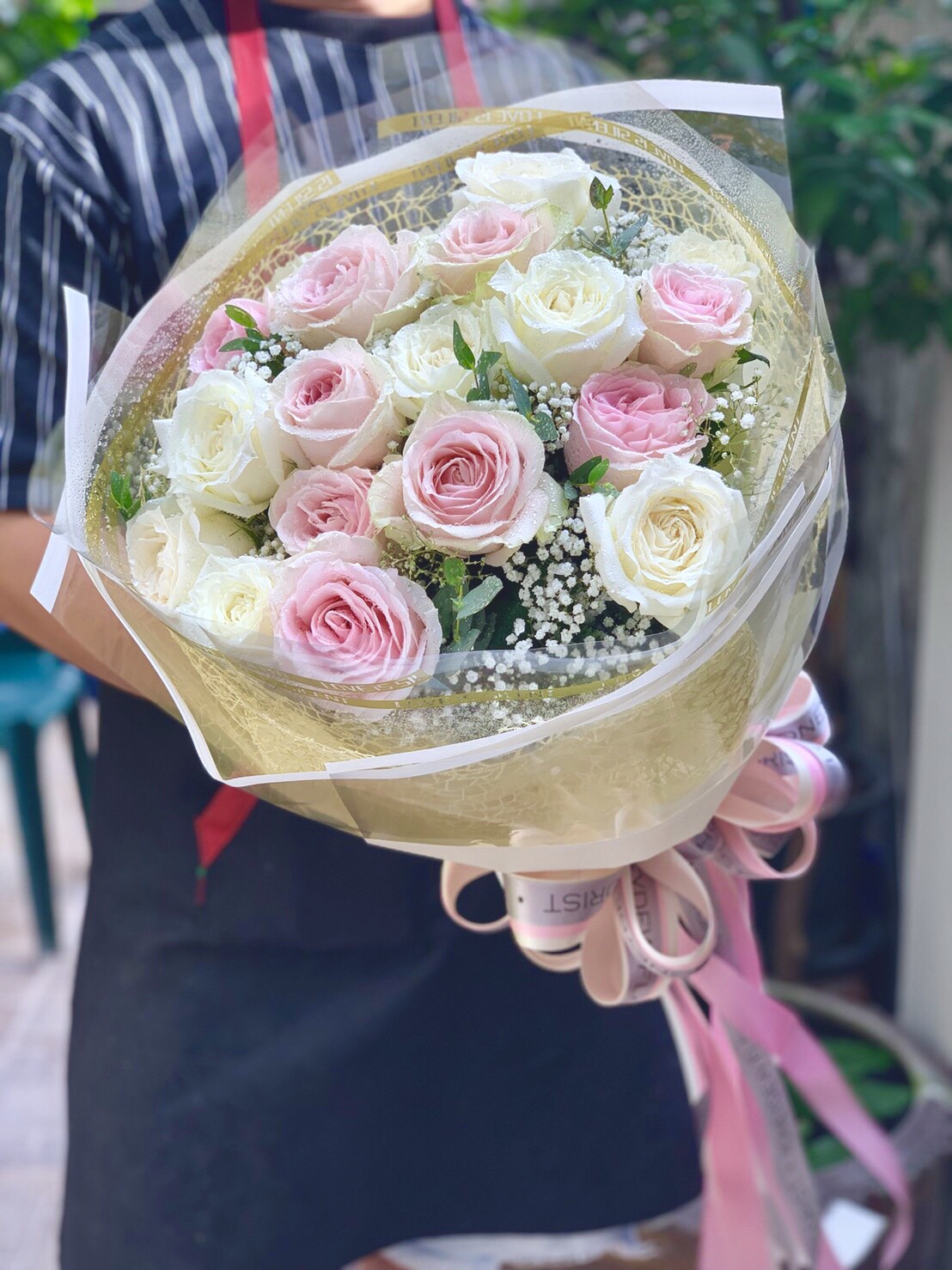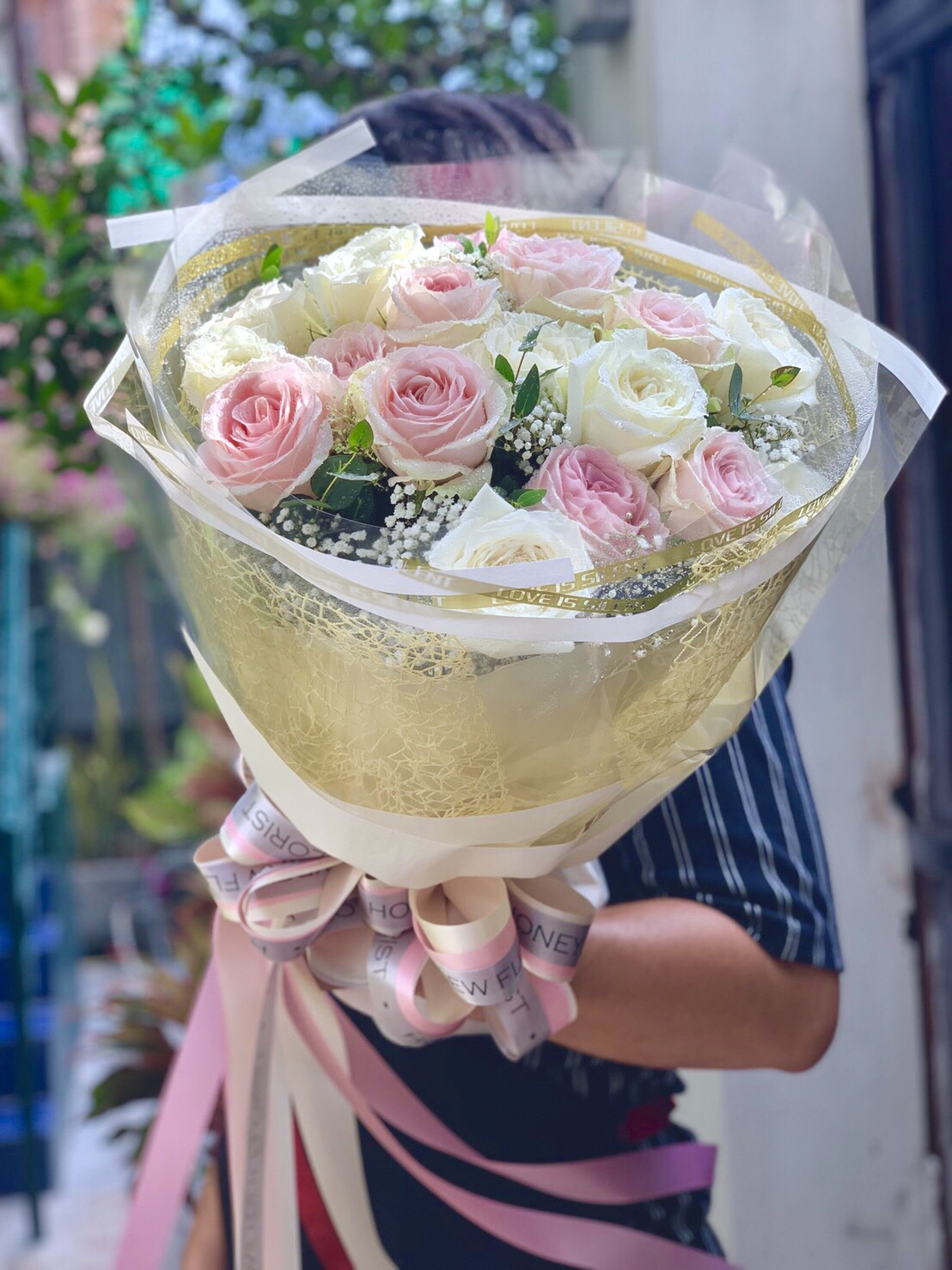This scented flower arrangement contains 8 pink and 8 white colored roses. The seductive fragrance assortment of flowers makes this bouquet look even more fascinating for your special valentines day.