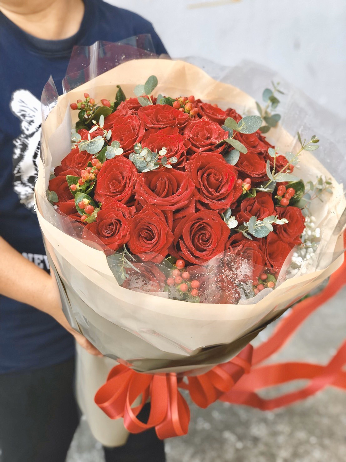 The elegance of 30 red Ecuador Premium roses bouquet is perfect for expressing your sincerity and attention. This bouquet is a good choice when you need to show someone what you are truly thinking about her.
