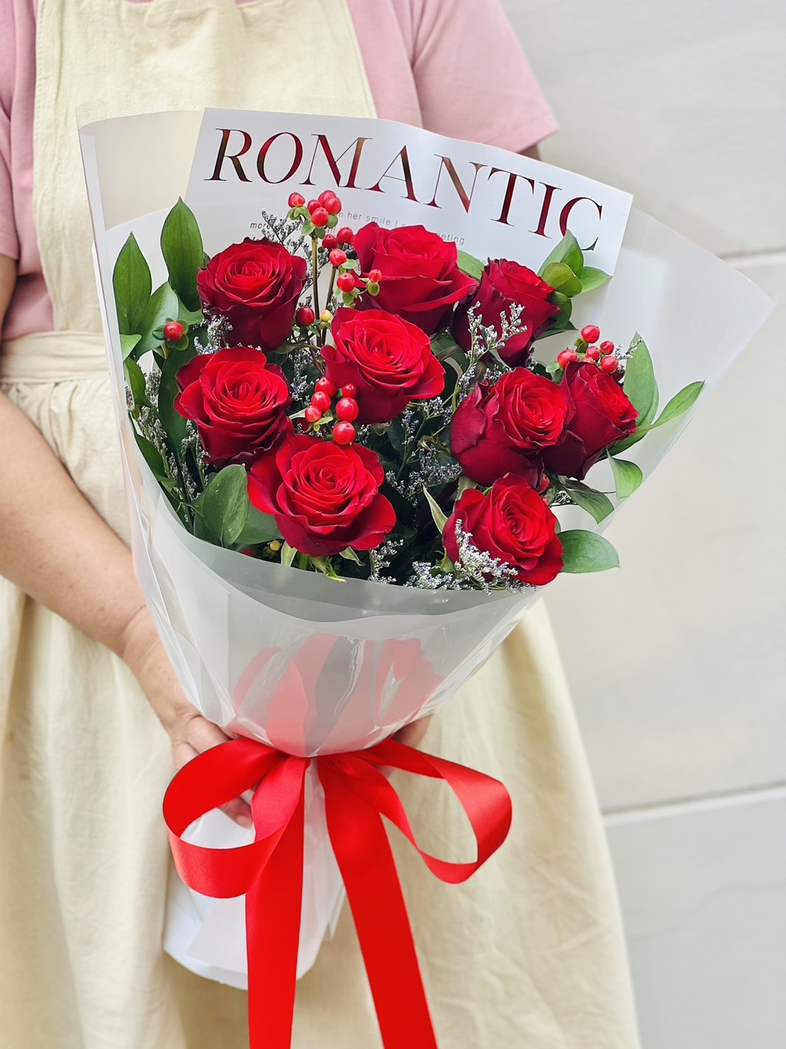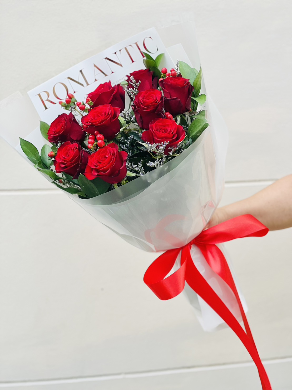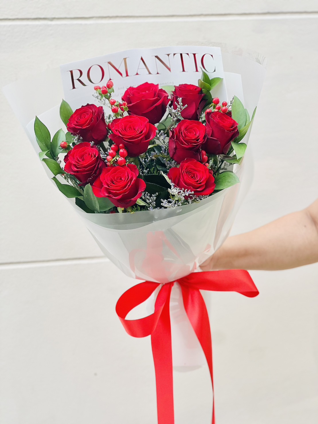 The elegance of the 9 red roses bouquet is perfect for expressing your mind. This bouquet is a good choice when you need to show someone what you are truly thinking about. tag: ดอกไม้วาเลนไทน์, ดอกไม้ Valentine