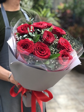 A romantic and charming bouquet decorated with the 9 red roses will fulfilled your valentines day more wonderful. There are good meanings hidden in this beautiful bundle such as love, care, kindness. tag: ดอกไม้วาเลนไทน์, ดอกไม้ Valentine