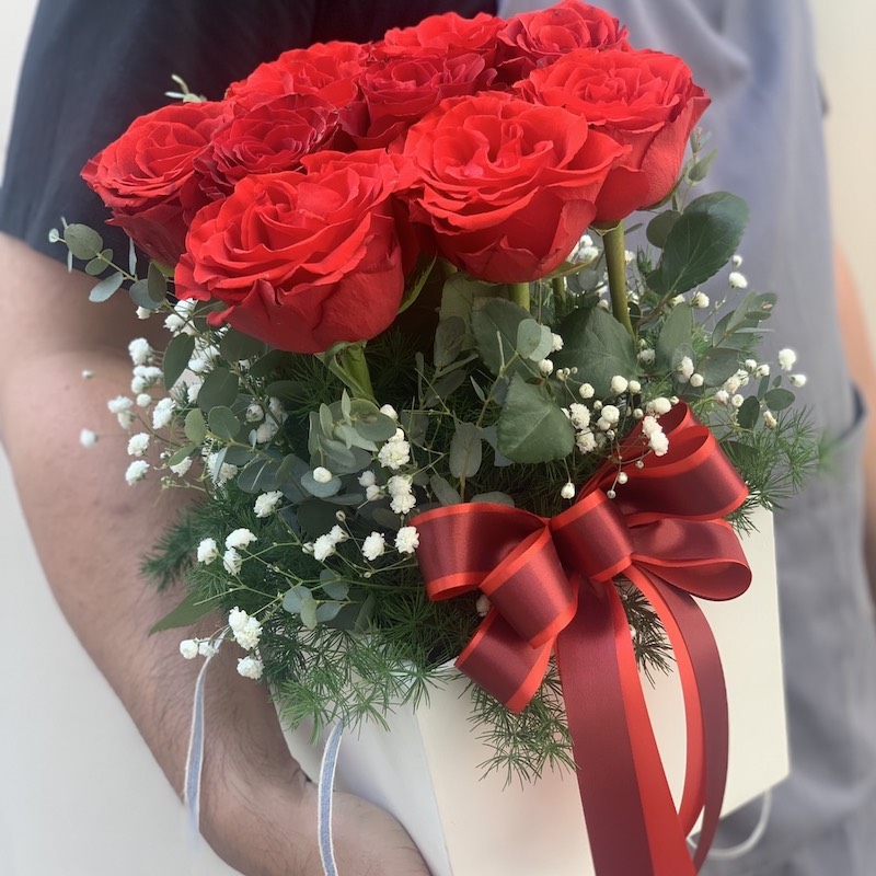 This eye-catching flower box contains a red of vibrant flowers including 9 red roses. Send your best wishes through the good meanings of these flowers. Give brightness and youthfulness to your loved ones. tag: ดอกไม้วาเลนไทน์, ดอกไม้ Valentine