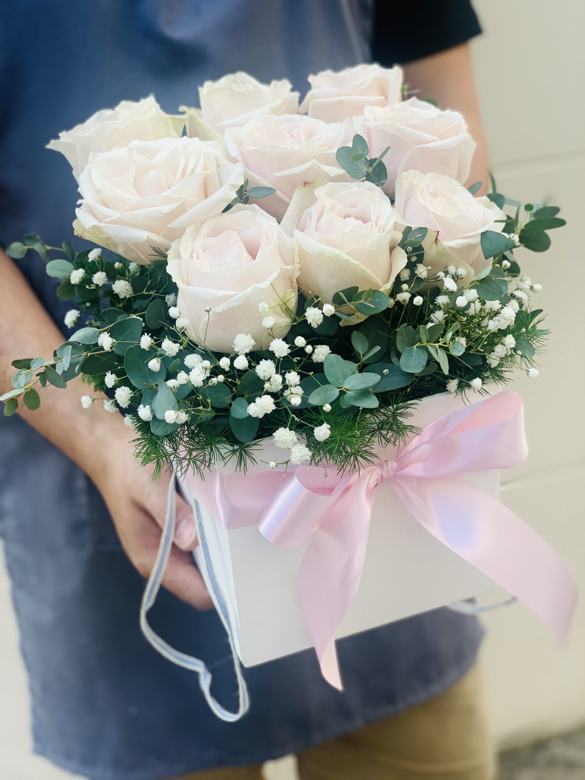 The pink rose flower box is suitable for your special occasion. A floral box consists of 9 pink roses. These arrangement is the representative of your love and care for your very important person. tag: ดอกไม้วาเลนไทน์, ดอกไม้ Valentine