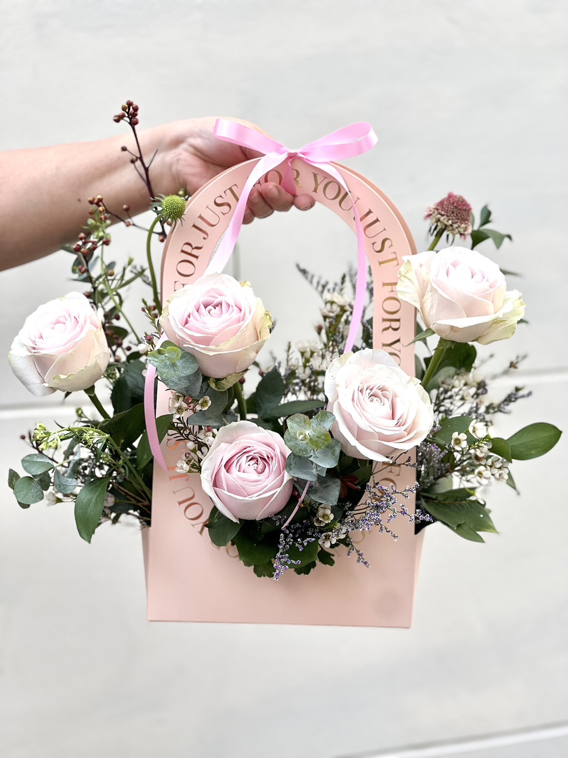 A romantic and charming package decorated with the 5 pink roses will make your day brighter. There are good meanings hidden in this beautiful bundle such as love, care, kindness, and regards.