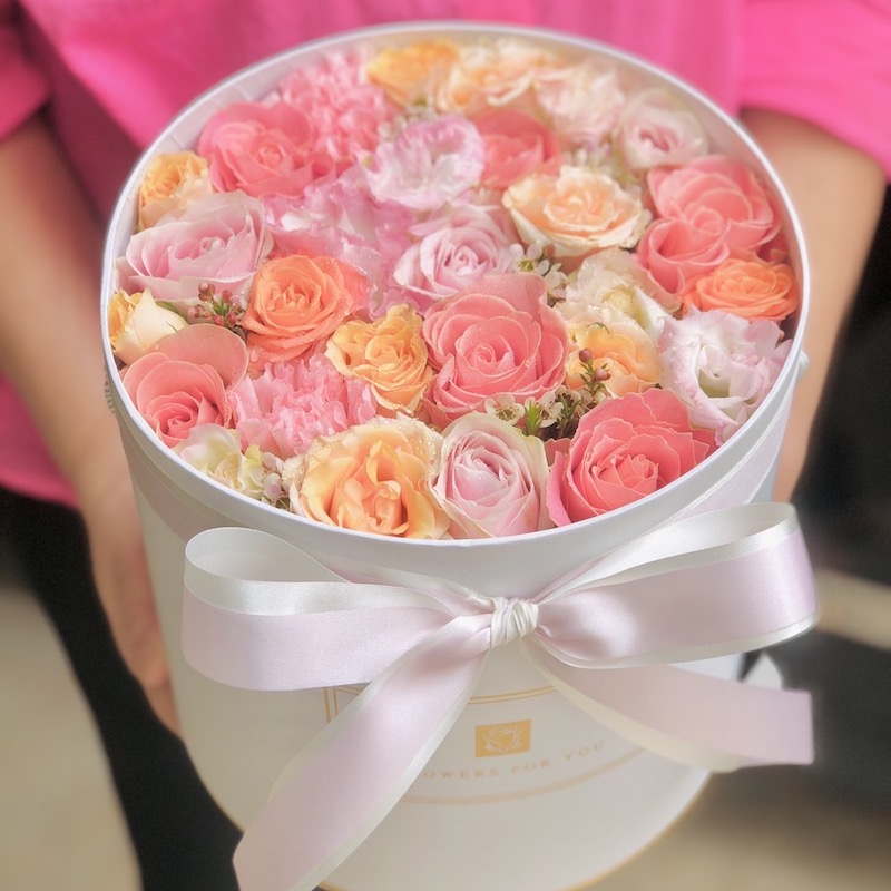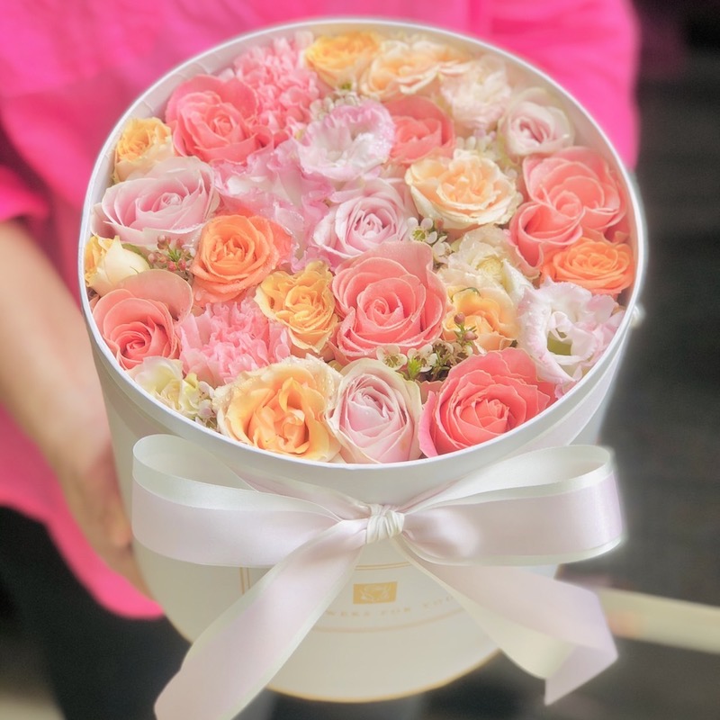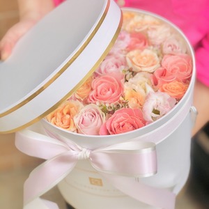 A flower box full of beautiful flower creates the sensation of a memorable impression. The 8 colorful roses in round shape has presented in memmory box. It is an excellent gift for the special